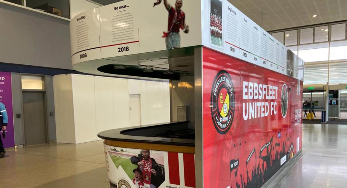 The Fleet are pleased to announce the launch of our new hub facility on the main concourse at Ebbsfleet International Station.Situated in prime position by the entrance/exit doors to the busy transport facility, the hub was this week wrapped in bright and bold EUFC branding to attract supporters, commuters, new residents and visitors.We’ve now unwrapped
