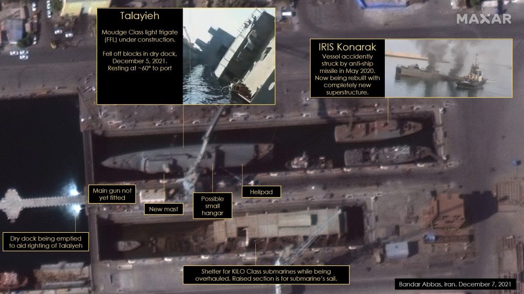H I Sutton Photo Illustration for USNI News Satellite image ©2021 Maxar Technologies Used with PermissionIran’s drive for naval modernization and self-sufficiency has had another recent setback the when Iranian Navy’s newest frigate capsized in its dry dock. Last week, the Islamic Revolutionary Guard Corps showed off more than 100 of their latest homegrown fast […]